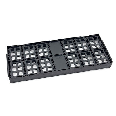 Esta bandeja ESD padrão JEDEC oferece proteção confiável para dispositivos semicondutores durante o manuseio, armazenamento e transporte. A bandeja é fabricada com materiais plásticos de alta qualidade com propriedades eletrostáticas controladas para garantir a segurança do dispositivo.